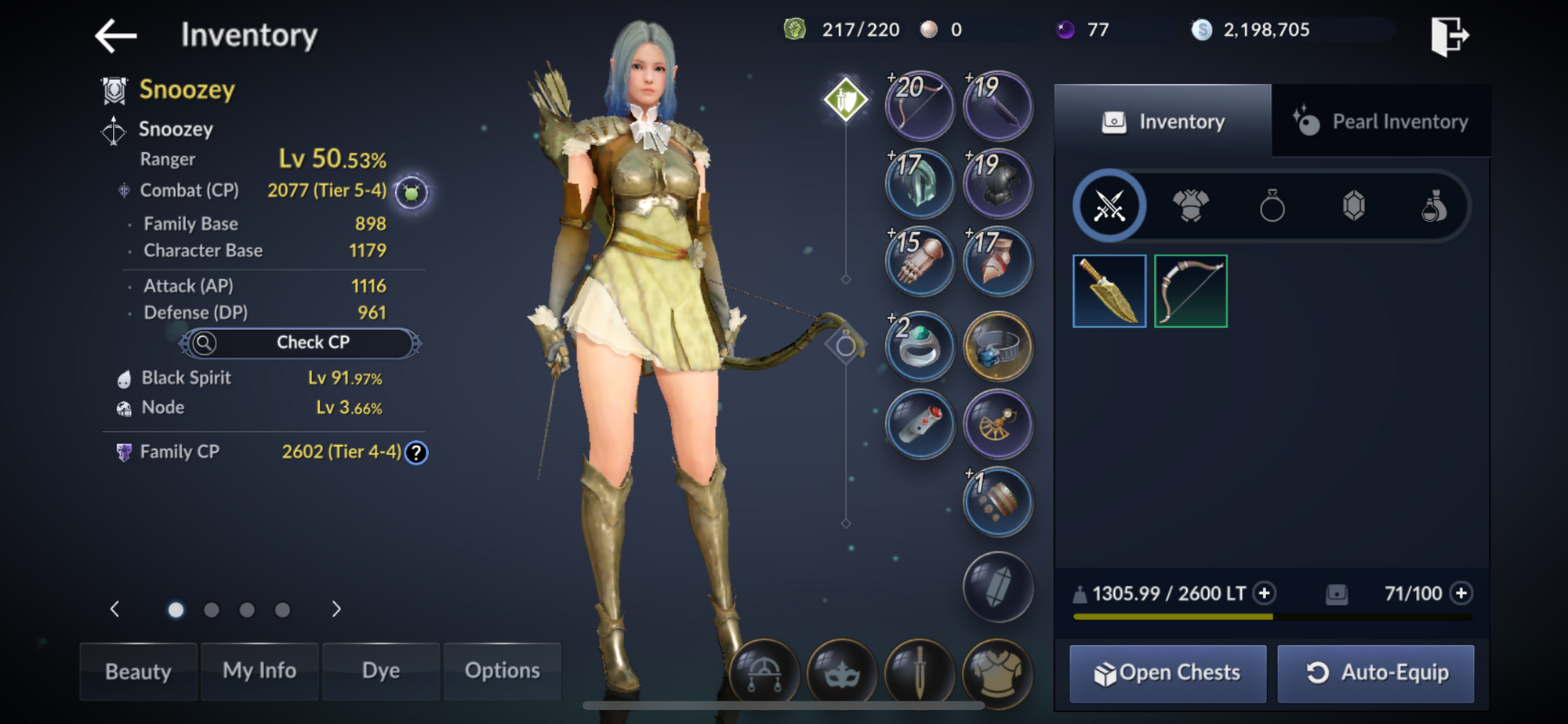 Pretty typical UI for this kind of thing on mobile. I think this screen is well done. From a glance I can see what is in my inventory I can equip and what I have on. the +numbers on the gear is the enhancement level. Just like the normal game you can enhance your gear.