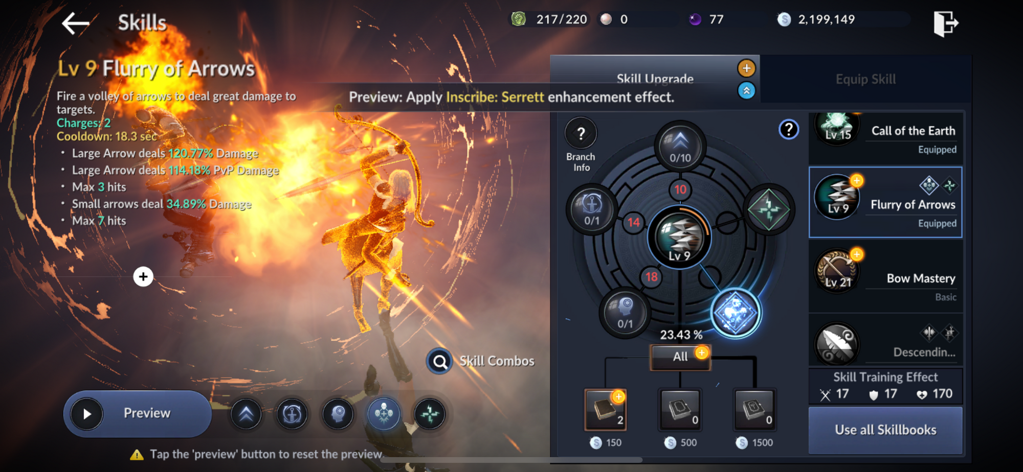 This screen is a bit different than the normal Black Desert skill system. Here you collect books from drops. Then you pay silver and the books to gain EXP. Each skill has a skill tree as you can see. Sometimes they give an extra charge before going on cooldown, more damage, or even hit more enemies. You gain skills just by leveling up.