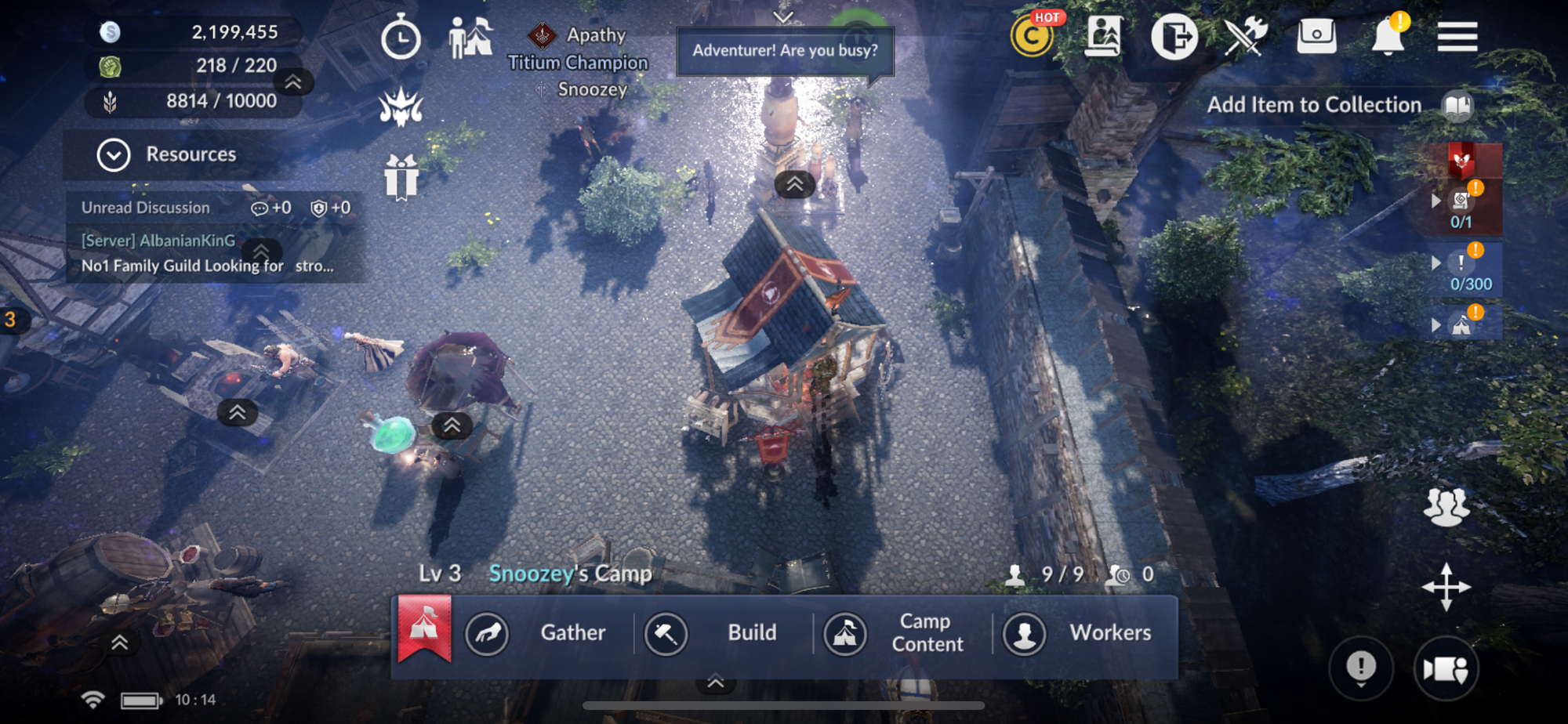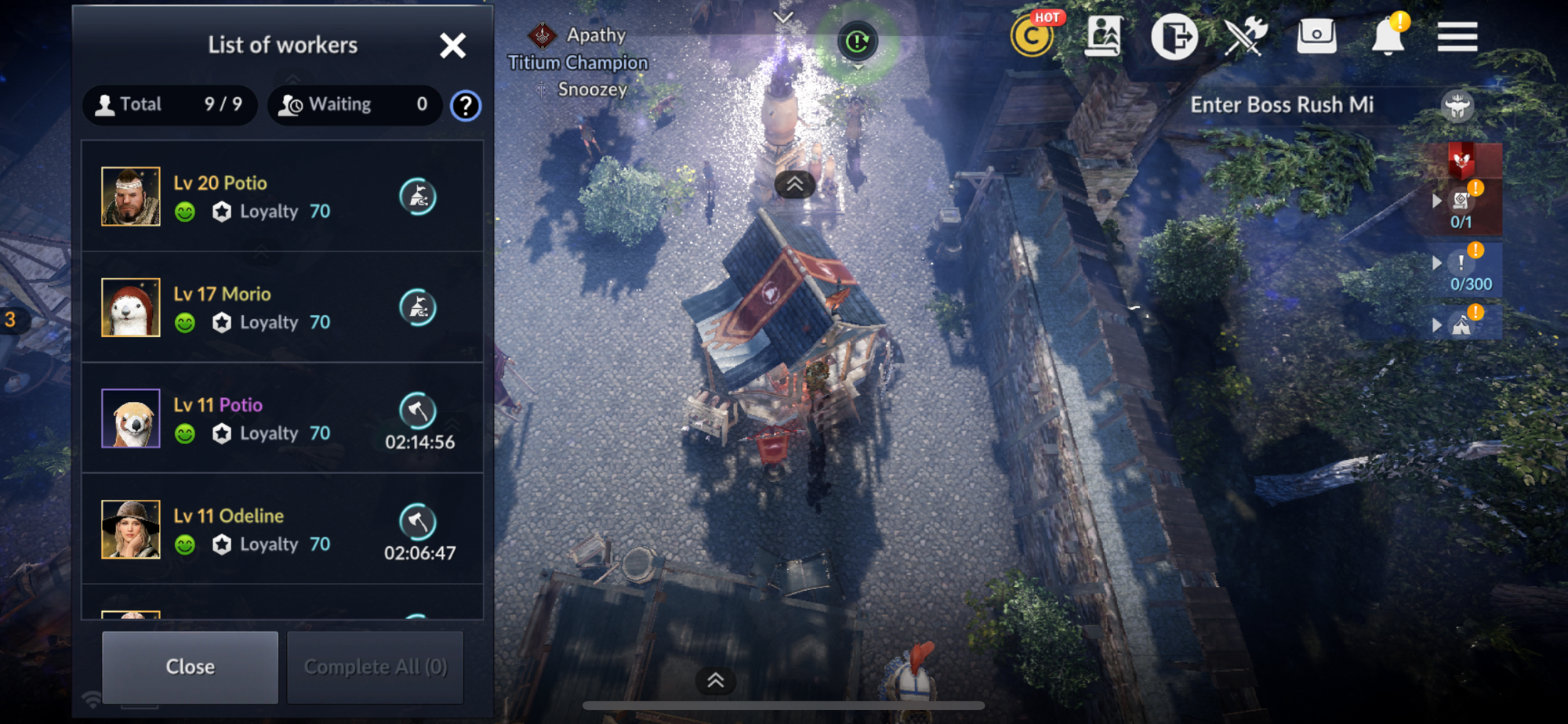Black Desert mobile has the worker system as well. It's slightly different, and it seems so much more annoying that I kind of hate it so far. On Black Desert I just give them beer, and they work until they run out of beer. Here they only do 1 task and stop. You can build your own town which holds your workers and building.