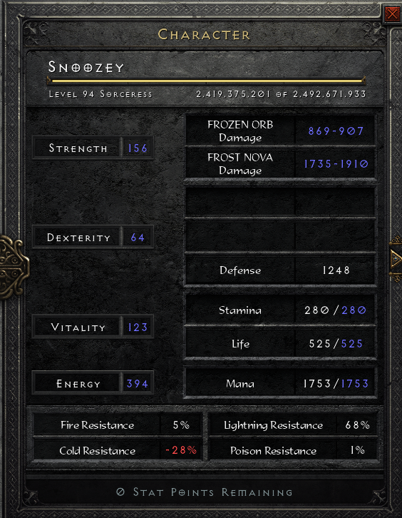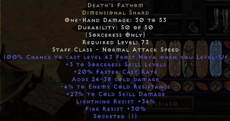 This is not a ladder start build. It does require items to get going, and most important levels. It isn't cheap, but it was insanely fun. The gear is used by Orb and Blizzard sorcs too so most of this can be taken from them or moved to them in case you don't like the build. However, since you share gear with those current meta builds it does make it expensive.