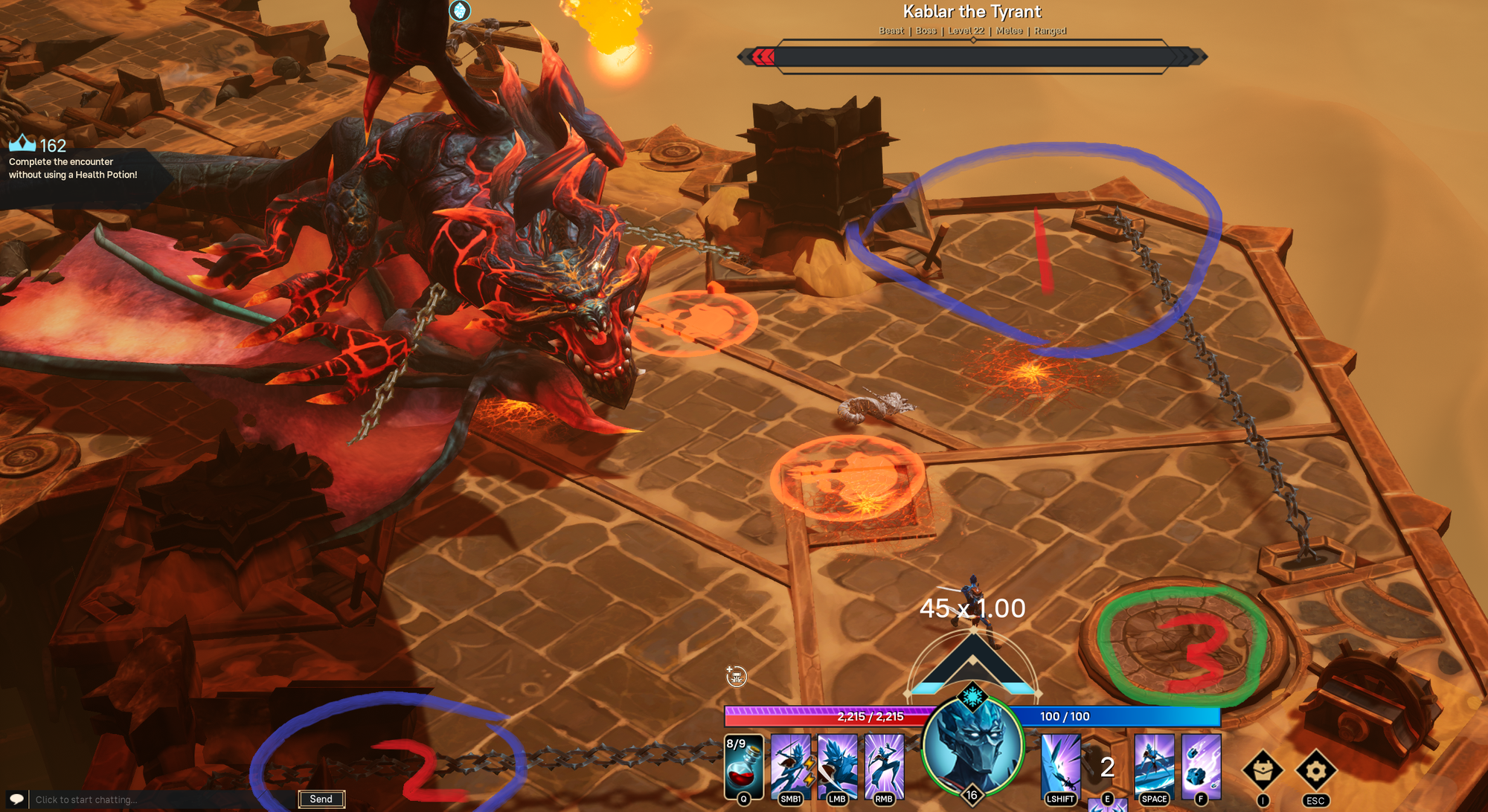 The last part is easy as well. I've marked in the screen shot below the order I do the fight in. 1 and 2 you need to interact with the area. It will shoot a chain onto the boss. You should see the prompt to interact when you get close. The chains will go away if you're too slow. So get both chains on the boss then run to 3. You have to stay on 3 until it finishes and then the boss is just a tank and spank