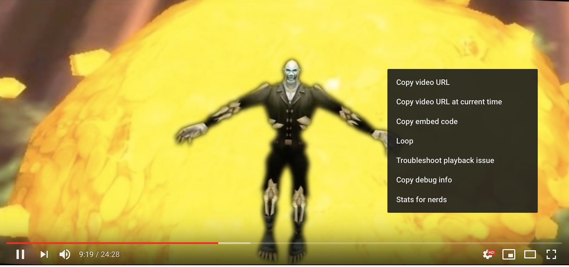 The first time you do a right click you'll see the Youtube menu. It has quite a few useful selections, but it's not what we are looking for. Simply right click again and you should get the menu we are looking for.