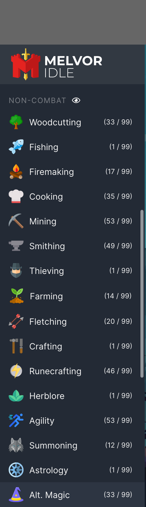 Lots of people ask why you would want a game to play for you. I put buying Melvor off for a long time because I thought it wouldn't be fun. It's actually a really fun game, and it fills the niche of progression. Even if I wanted to cut yews for 12 hours, I can think of a few other ways to spend my time. With Melvor I could play another game like Lost Ark, but still, keep progressing my account in Melvor. It generally has the same gameplay loop as RuneScape. The game is heavily inspired by RuneScape so much so most of the skills are identical.