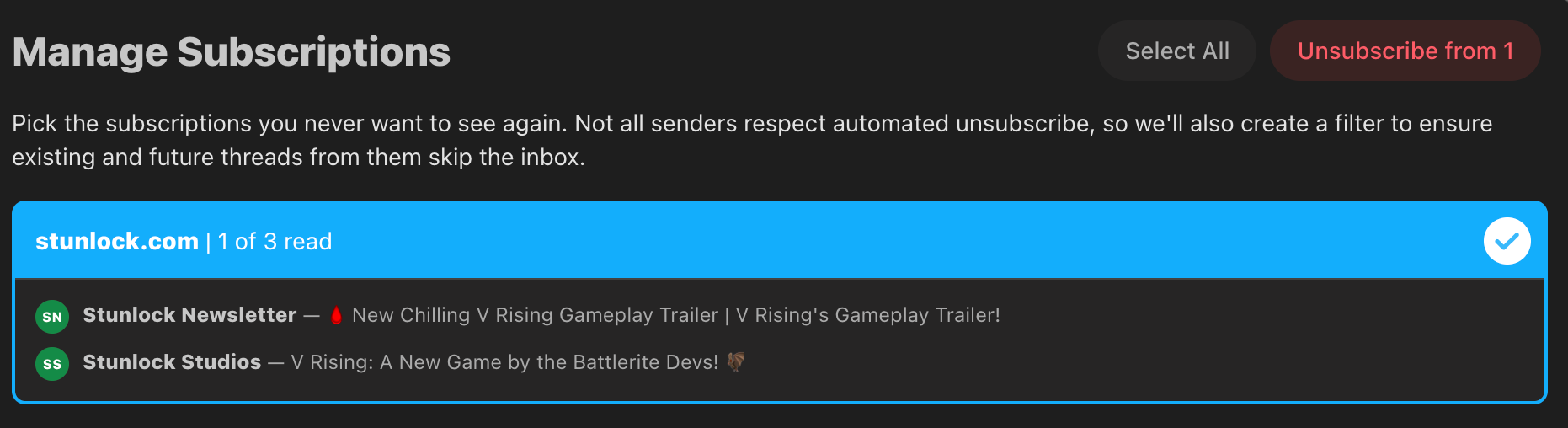 One feature I really enjoy is the ability for it to see what emails I am ignoring, and provide a clean UI for me to look and unsubscribe from them. Twobird will try to unsubscribe you automatically. This saves you some time from going to the websites and unsubscribing via the links provided. I've noticed sometimes I still have to do that.