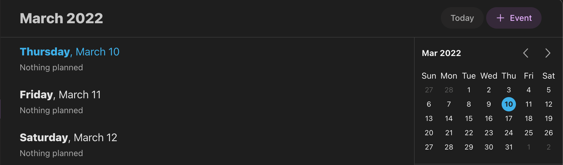 Twobird as most email clients has a built calendar function. Again it's just enough features for me to use that it is nice to have. However, I don't use this myself. In the future, I may move to it, however. It's nice to have the option available.